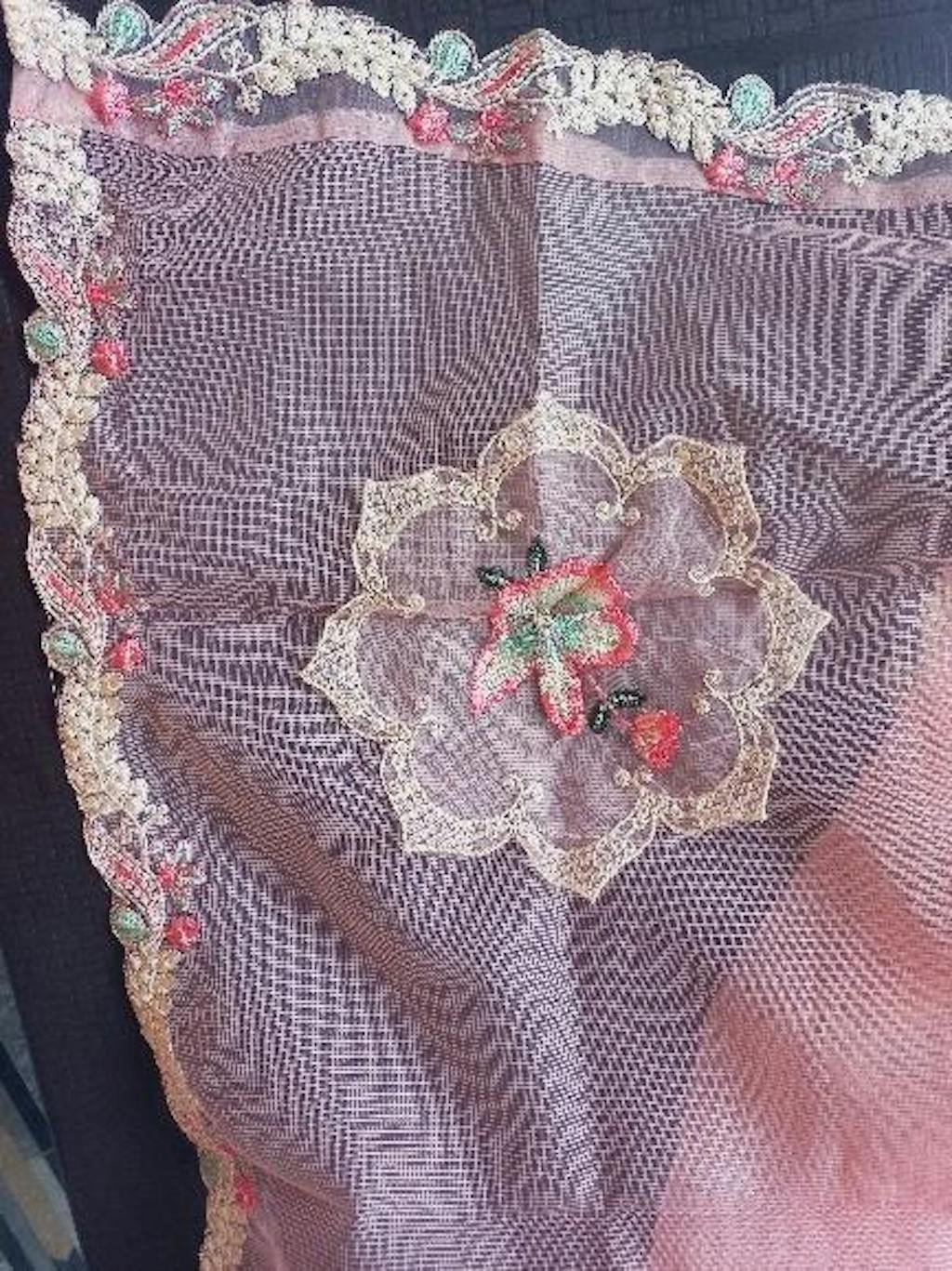 Dupatta= Ready To Wear Monark Dupatta With Heavy Embroidery Organza Cutwork 4 Side Lace And Motifs Pallu.